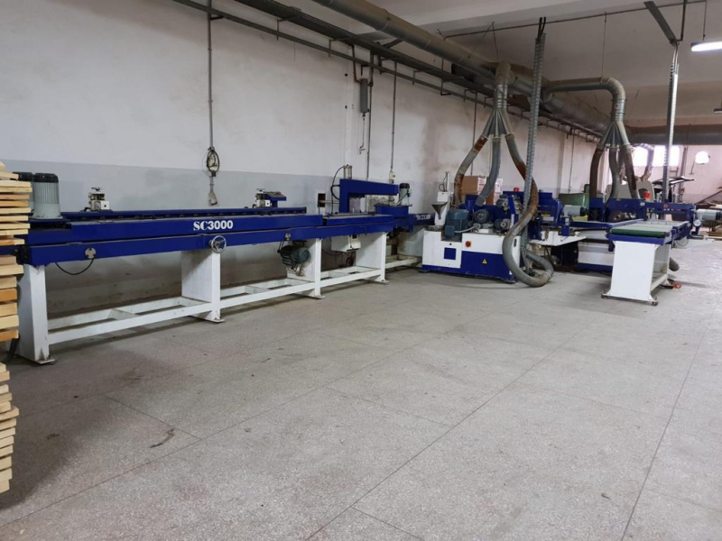 - 1st Finger-jointing machine, complete with sliding carriage, belt for the introduction of the pieces, end trimming unit and shaper unit.