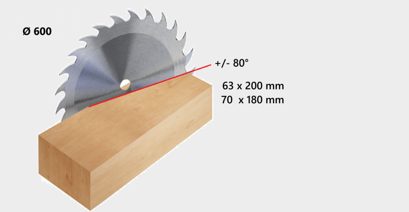 Capacidad max de corte con hoja 70° (corte angular)