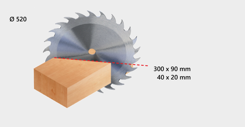 EQUIPAMIENTO ESTÁNDAR: Instalación eléctrica conforme a las normas CE, freno motor mecánico, retorno por resorte, arranque estrella-triángulo, mesa de rodillos de 1 m a la derecha, mesa de rodillos de 1 m a la izquierda, hoja de Widia incluida.